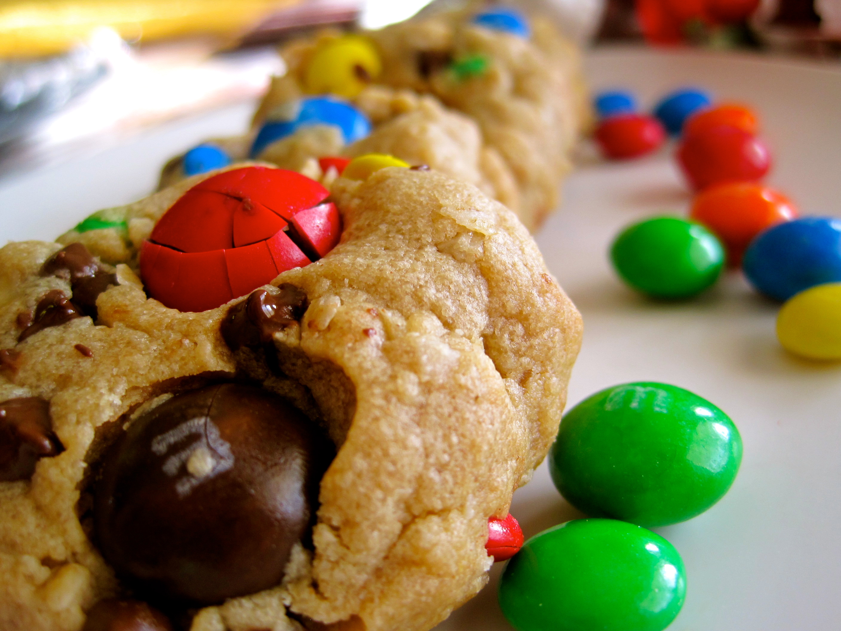 It’s the mother of all cookies. It’s a peanut butter oatmeal chocolate chip M&M cookie.